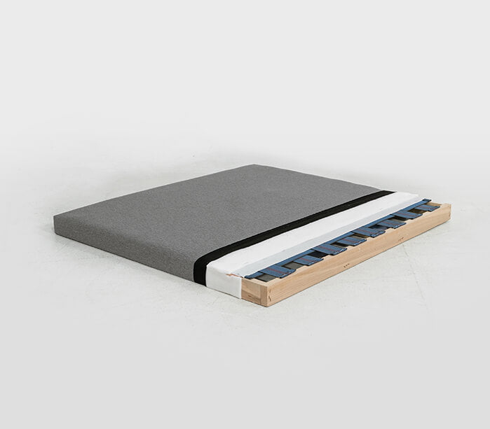 La base per il riempimento della serie è composta da una densa rete di larghe bande elastiche, che si intrecciano sia verticalmente che orizzontalmente. La disposizione delle cinghie s tutta la superficie dove ci si siede offre all’utente una morbidità e comodità ulteriori quando ci si siede o ci si sdraia per molto tempo.