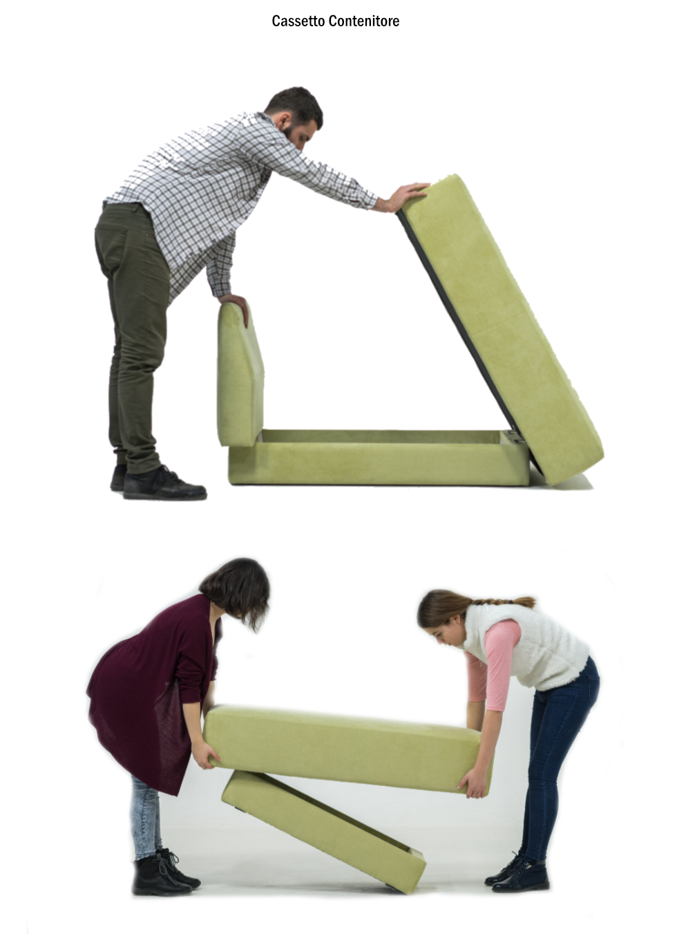 Sotto ogni elemento c’è uno spazio di stoccaggio dove puoi riporre biancheria da letto, cuscini, coperte…