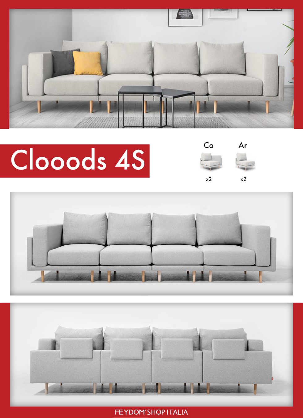 CLOOODS è un sistema modulare trasformabile, confortevole e durevole che può essere adattato a qualsiasi spazio. Diversi elementi possono essere riorganizzati in diverse combinazioni. Semplicemente spostando il cuscino è possibile trasformare il design classico in minimalista.